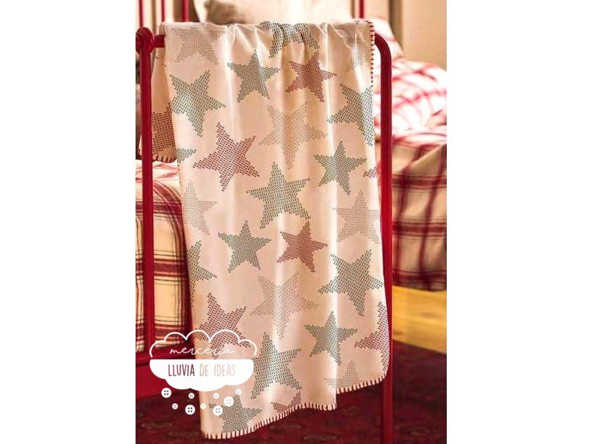 Coralina estampada con estrellas sobre fondo crudo, también conocida como tejido coral o coral fleece. Se trata de un tejido con un pelo muy cortito, con gran capacidad térmica. Su tacto es muy característico: es extremadamente suave, con tacto aterciopelado, muy amoroso. Es una tela ligera y cálida que resulta ideal para la confección de mantas o plaids, batas, arrullos o mantitas de bebé, colchonetas o mantas para animales o incluso, también se podrían confeccionar prendas de abrigo como sudaderas o pijamas para los más frioleros.