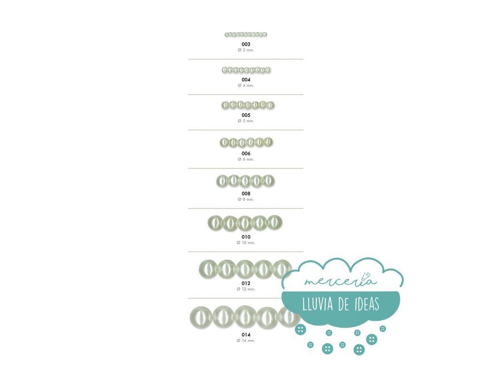 Conjunto de perlas presentadas tipo collar, ensartadas en un hilo con una longitud de 70 cm. aproximadamente. Estas perlas se pueden utilizar como collar (disfraces, bisutería,etc.) o deshacer el nudo del hilo y emplearlas de forma individual para customizar prendas, accesorios, etc. ya que presentan agujero de entrada y salida por el que se puede pasar la aguja y coser. Referencia: 223104. Color: natural (blanco roto). Composición: 100% ABS de alta calidad. Tamaño: disponible en los diámetros de perla del seleccionable inferior. Resto de medidas por encargo. El precio se refiere a la unidad (1 collar).