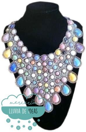 Collar de piedras multicolor termoadhesivo. La base es adhesiva de polietileno.
