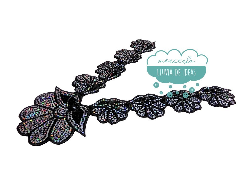 Aplicación bordada termoadhesiva con lentejuelas y pedrería - Serie Amira