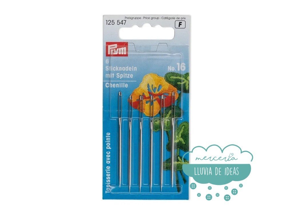 Agujas bordar con punta de la casa Prym. Son del nº16 y están indicadas principalmente para punto de cruz o bordados con hilos muy gruesos o con lana.