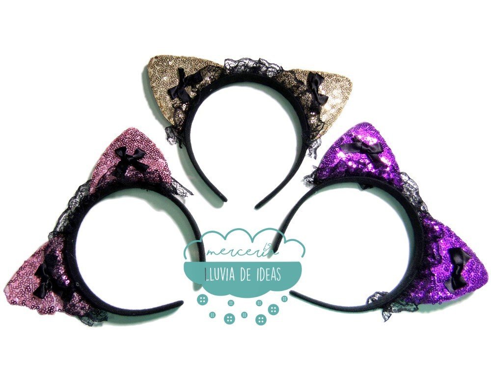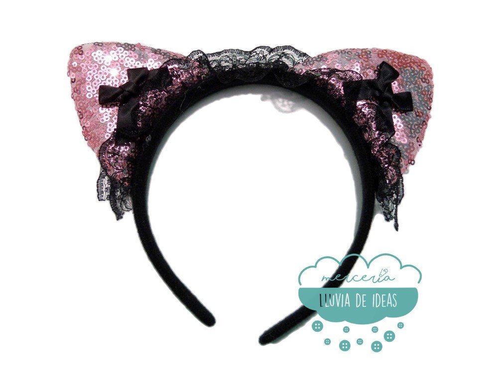 Diadema de gatita kawaii forrada. Accesorio perfecto en disfraces de gato o para disfraces góticos kawaii. Las orejas son acolchadas e incluyen lentejuelas cosidas. Incorporan encaje negro y lazos negros. Empléala en carnaval, cosplay, cumpleaños, baby showers, despedida de soltera, etc. Combínala con un tutú y obtendrás un disfraz sencillo y económico.