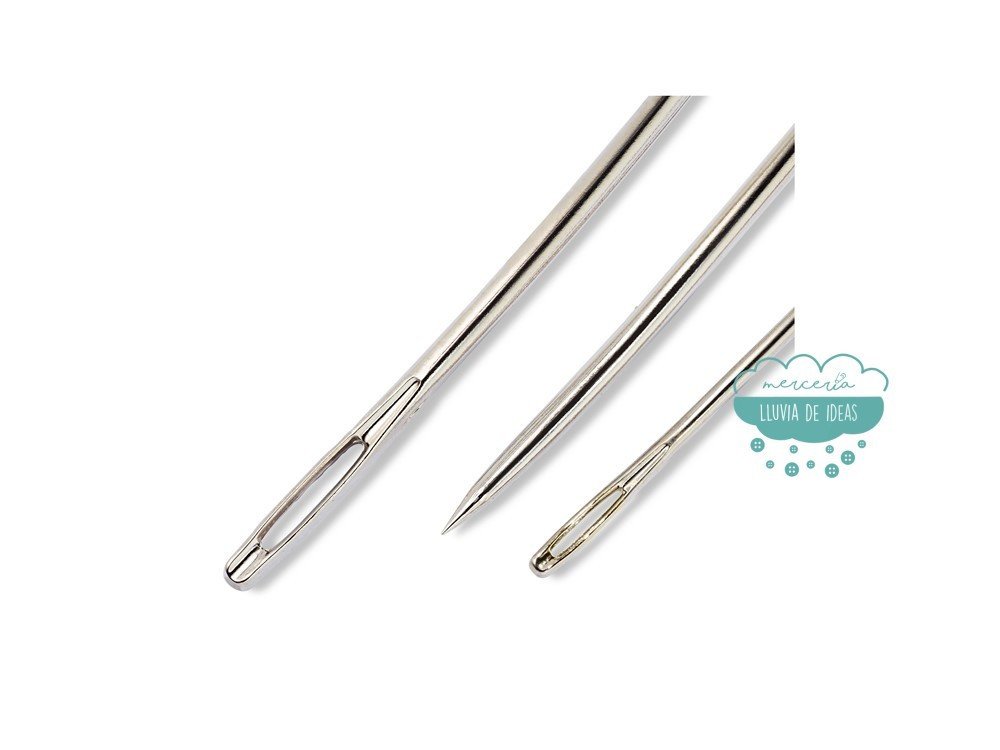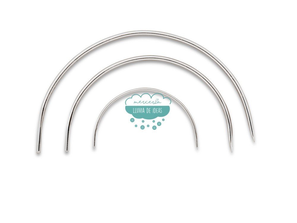 Agujas curvadas para tapizar. El set incluye 3 agujas del nº 2, 4 y 5. Color plata.