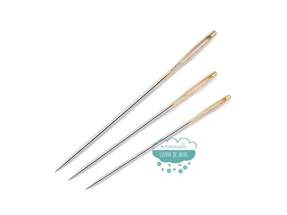 Se utiliza para bordados finos y es fácil de enhebrar. Gracias a su punta fina no deja rastros en el tejido.