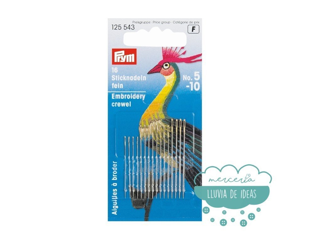 Agujas para bordar a mano Crewel Nº 5-10 Prym