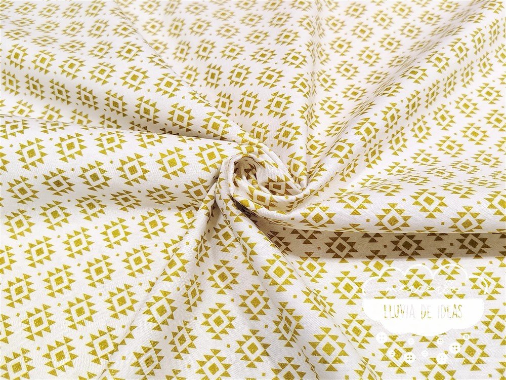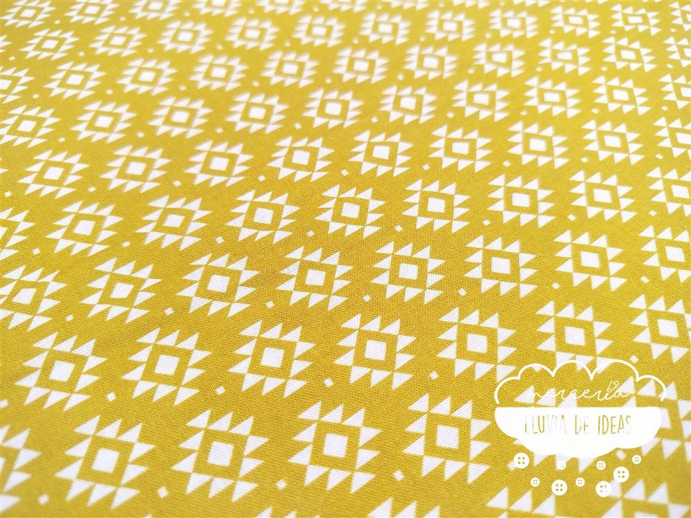 Tela de algodón con estampación coordinada de figuras geométricas. De tacto suave y agradable, resulta ser un tejido resistente y muy versátil. Ideal para proyectos de confección tanto en ropa en general (vestidos, faldas, camisas...), como en la creación de accesorios de moda o del hogar (neceseres, bolsas, porta documentos, cojines, etc.).