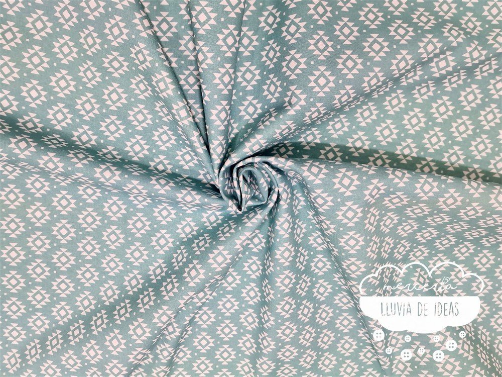 Tela de algodón estampado. Esta colección de algodón combina diferentes estampaciones geométricas coordinando un tono base con el color blanco. De tacto suave y agradable, resulta ser un tejido resistente y muy versátil. Ideal para proyectos de confección tanto en ropa en general (vestidos, faldas, camisas...), como en la creación de accesorios de moda o del hogar (neceseres, bolsas, porta documentos, cojines, etc.).