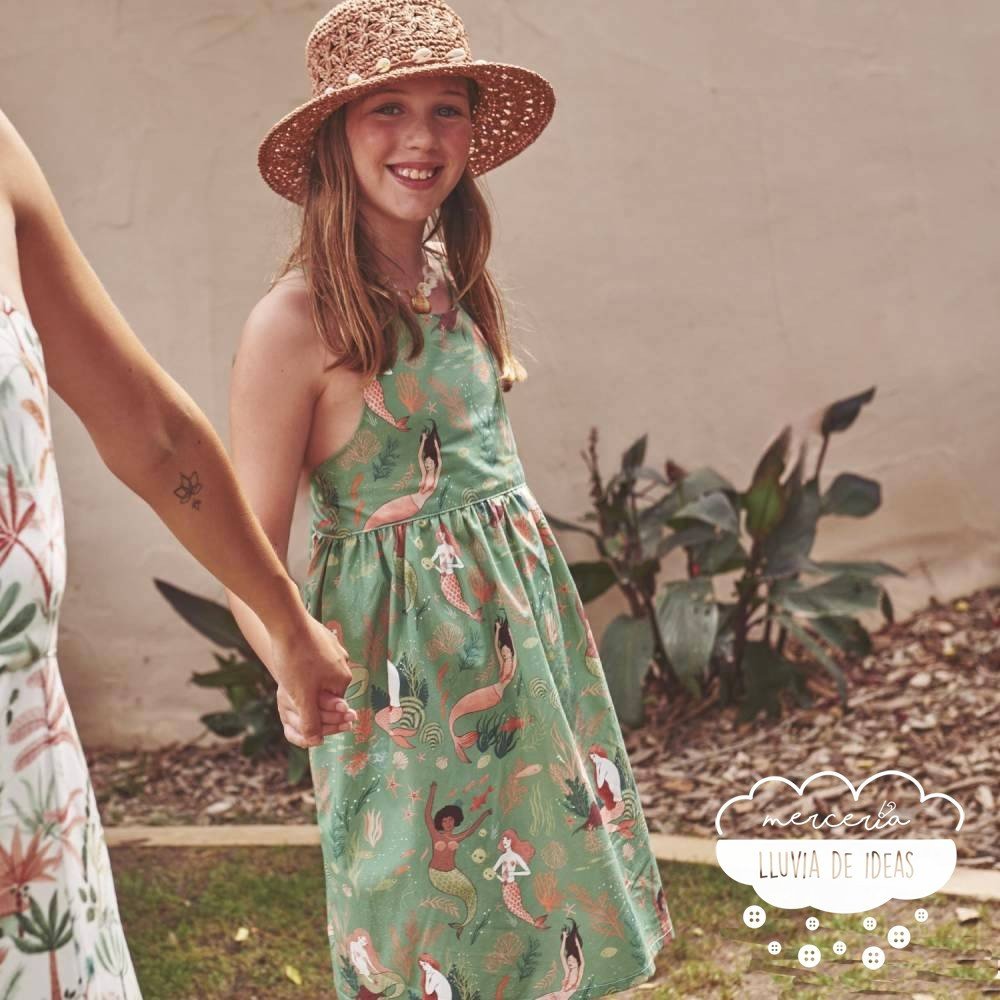 Por su suavidad, composición 100 % algodón y un peso de 120 g/m², la tela popelín de algodón Poplin Coral Mermaids de Katia Fabrics, es perfecta para confeccionar vestidos y camisas para toda la familia en primavera y verano. Su suavidad y ligereza garantizan comodidad, mientras que su estructura transpirable asegura frescura durante todo el día.