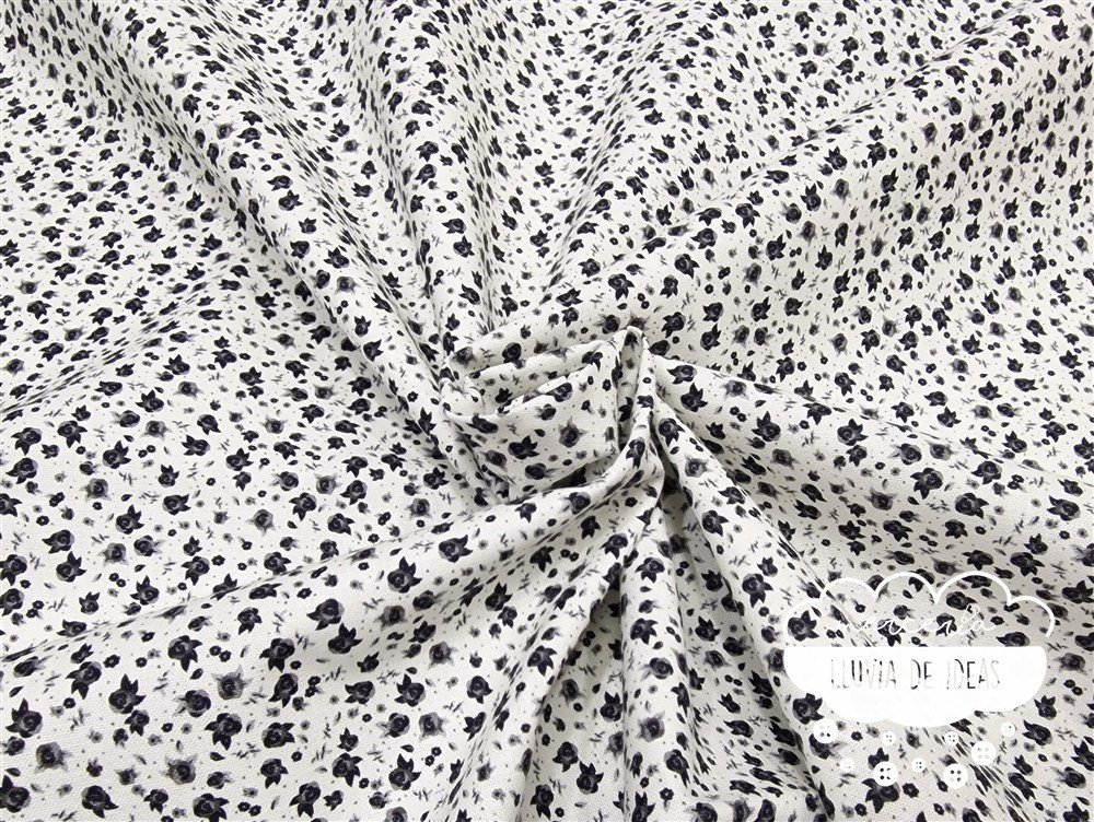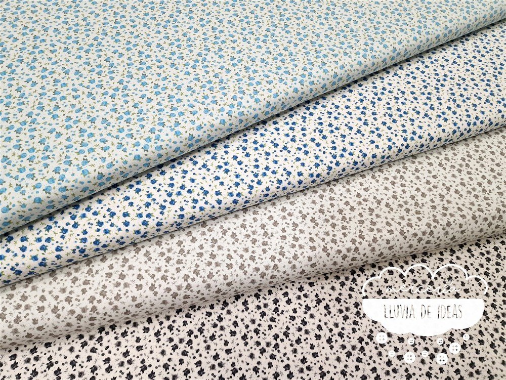 Tela de algodón flores con estampación de pequeñas rosas. De tacto suave y agradable, resulta ser un tejido resistente y muy versátil. Ideal para proyectos de confección tanto en ropa en general (vestidos, faldas, camisas...), como en la creación de accesorios de moda o del hogar (neceseres, bolsas, porta documentos, cojines, etc.).