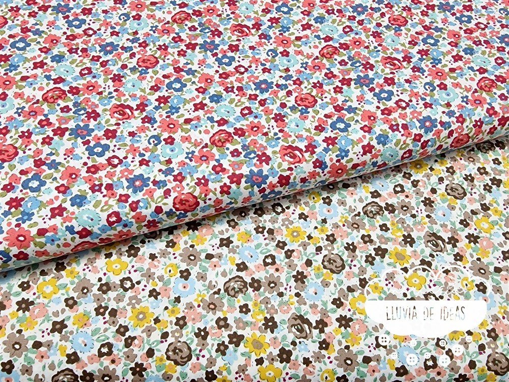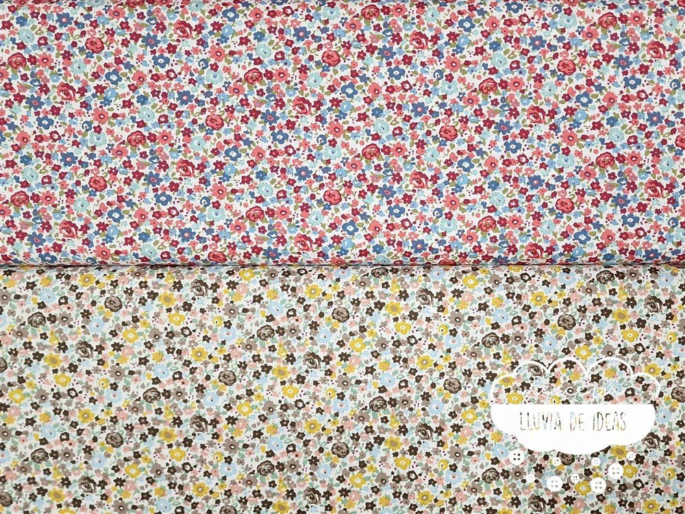 Tela de algodón flores con estampación tipo Liberty. De tacto suave y agradable, resulta ser un tejido resistente y muy versátil. Ideal para proyectos de confección tanto en ropa infantil en general (vestidos, ranitas, peleles, camisas, baberos...), como en la creación de accesorios de bebé (neceseres, baberos, bolsas de maternidad, porta documentos, cojines, etc.). También ideal para proyectos de confección de adulto (vestidos, faldas, camisas...) o en la creación de accesorios de moda o del hogar.