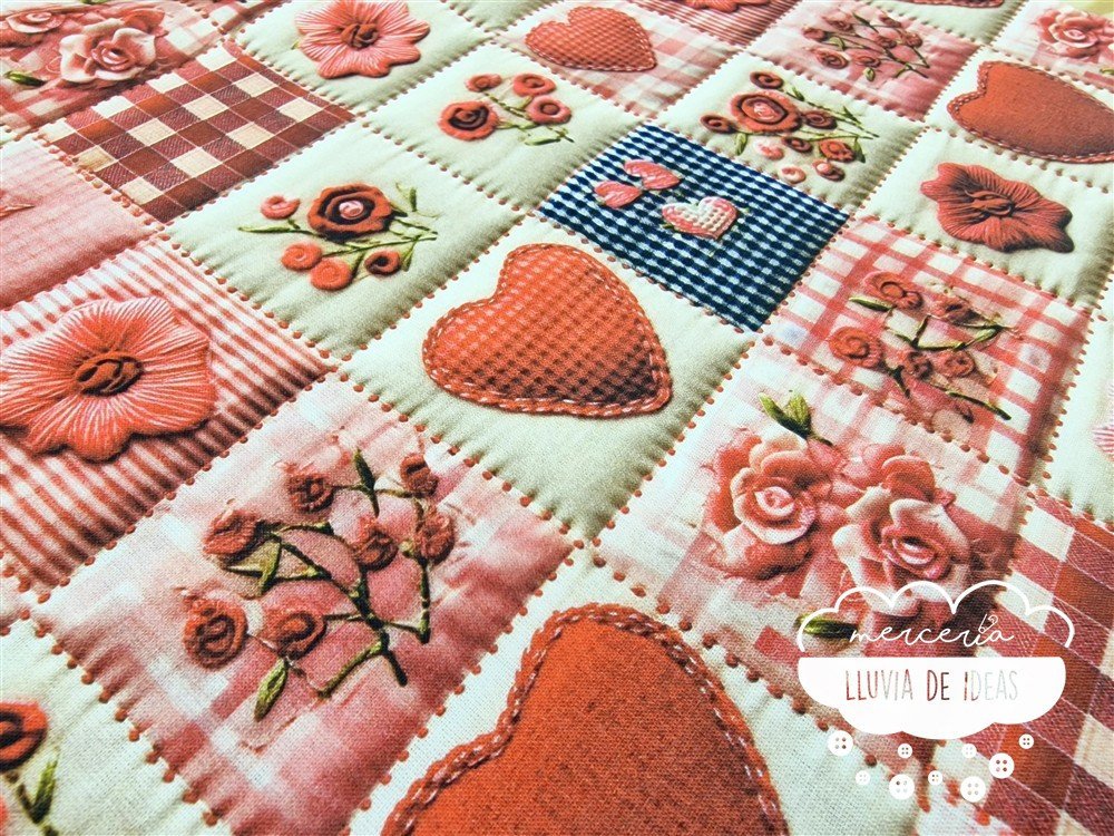 Tela de algodón con estampación digital que simula un acolchado de patchwork sobre fondos crudos con efecto 3D. El dibujo es tan realista que parece que las figuras toman volumen y salen del tejido. Resulta ideal para creaciones originales debido a su colorido y vistosidad. Podrás confeccionar proyectos que no pasarán desapercibidos, como bolsitas de merienda, estuches, mochilas, customizar prendas o crear complementos para vestir.