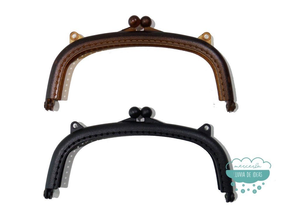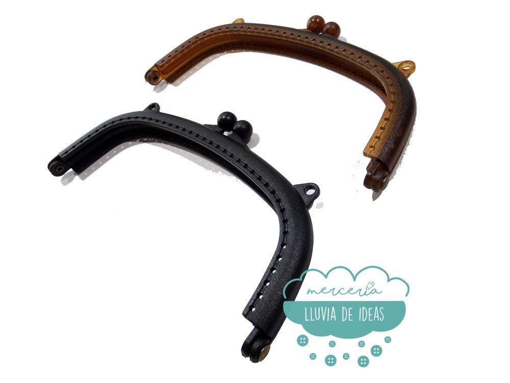 Boquilla de plástico de forma ligeramente arqueada para confeccionar tus propios monederos, funda, bolsos o neceseres. El tejido se une a la boquilla cosiendo el hilo a través de los agujeros que presenta el plástico. Incluye arandelas para usar con colgador, cadena, asas, etc. Los puedes confeccionar además de trapillo ligero, ganchillo, tricot...