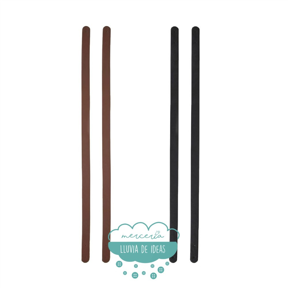 Completa tus bolsos hechos a mano con estas prácticas asas de piel sintética en colores básicos y neutros (negro o marrón). Resultan perfectas para bolsos medianos o grandes que se llevan al hombro. Cuentan con perforaciones en los extremos para coser o remachar fácilmente sobre los textiles, punto o ganchillo.