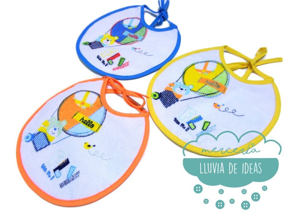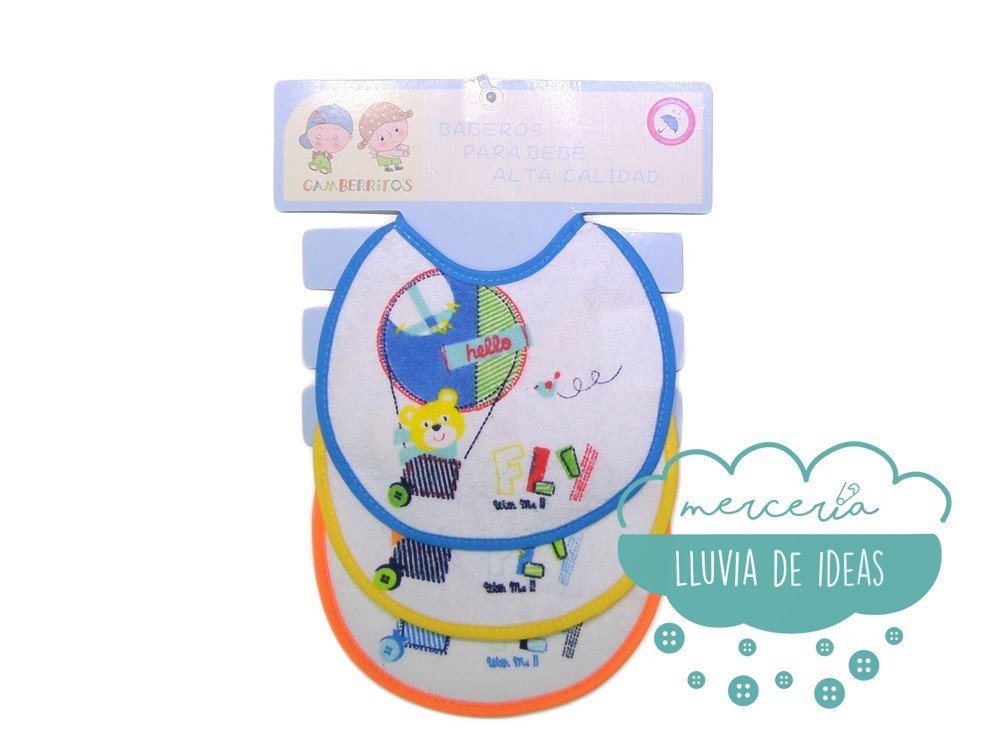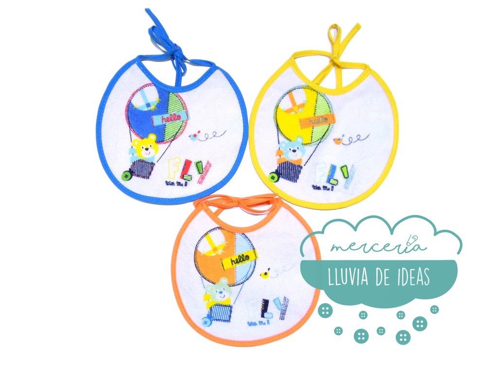 Babero rizo impermeable pack 3 unidades - Modelo Osito en globo