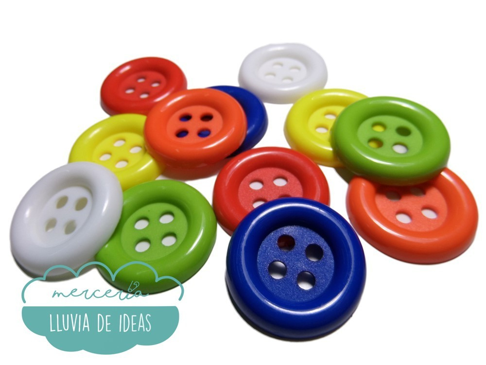 Botones ideales para decorar disfraces de payaso, arlequín o vestimentas de carnaval en general. De 4 agujeros, para coser.