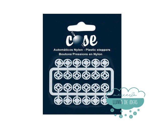 Botones de presión de plástico transparente de 8 mm. de diámetro. Son cierres de coser.