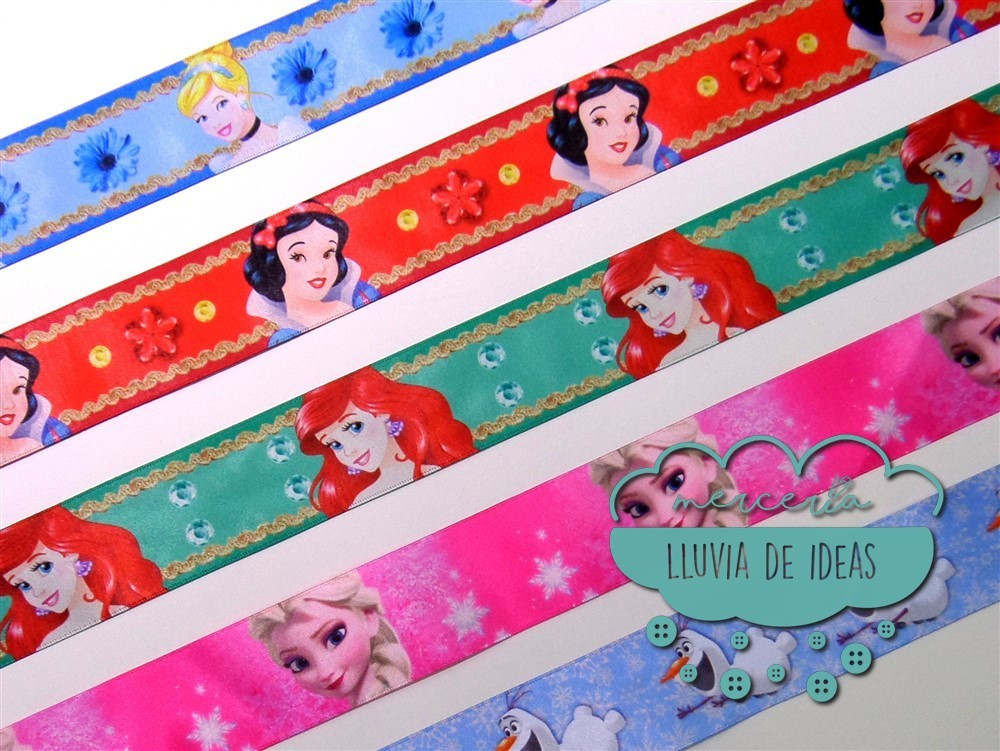 Cinta de raso o satén estampado - Colección Princesas Disney y Olaf