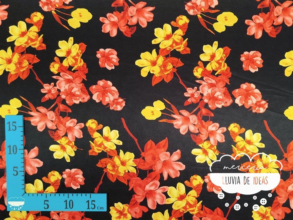 Raso estampado floral para dar estilo a tus diseños. Contiene brillo. Indicado para la confección de prendas de entretiempo para adultos. Podrás crear camisas, vestidos camiseros o con cortes, sobrecamisas, pantalones palazzo o faldas, consiguiendo prendas fluidas, con muy buena caída y movimiento. El porcentaje de elastán lo convierte en elástico para que se adapte mejor y resulte más cómodo.