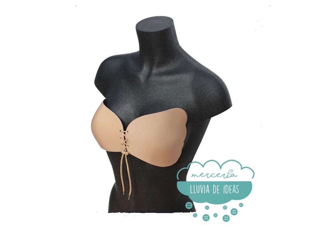 Sujetador Push up de copa adhesiva sin tirantes. Cordón central ajustable. Reutilizable.