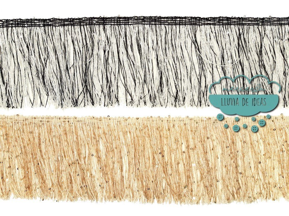 Fleco de rayón con pequeñas lentejuelas posicionadas aleatoriamente. Ideal para customizar vestidos, bolsos, capazos, cazadoras, botas, collares, etc. y manualidades en general. También son un recurso muy empleado para alargar prendas que quedan cortas. Con mucho movimiento, de tacto suave. Ligero brillo. Referencia: 9062. Composición: 90% viscosa y 10% PVC. Alto total: 12 cm. aprox. El precio se refiere al metro lineal. El corte mínimo son 0.25 m. y a partir de ahí, en incrementos de 5 cm. (0.30, 0.35, 0.40...).