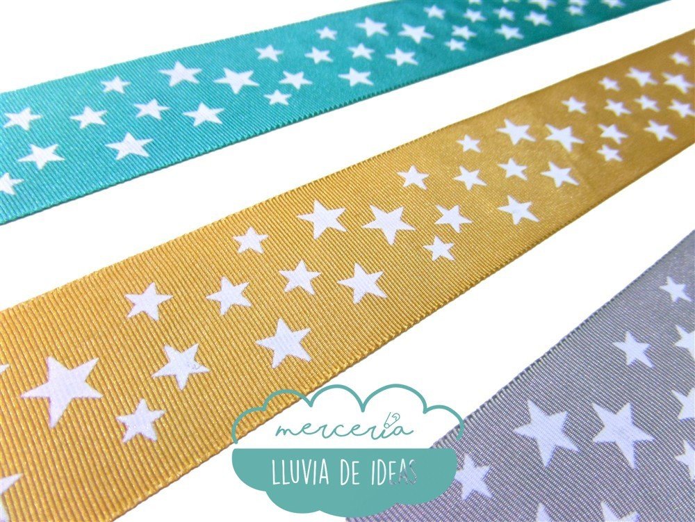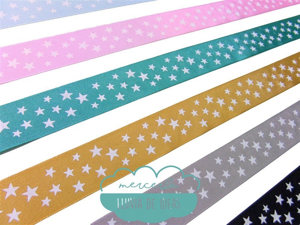 Cinta reversible, con estrellas por ambas caras. Cinta de falla, similar al grogré o gros-grain pero ligeramente con menos grosor.