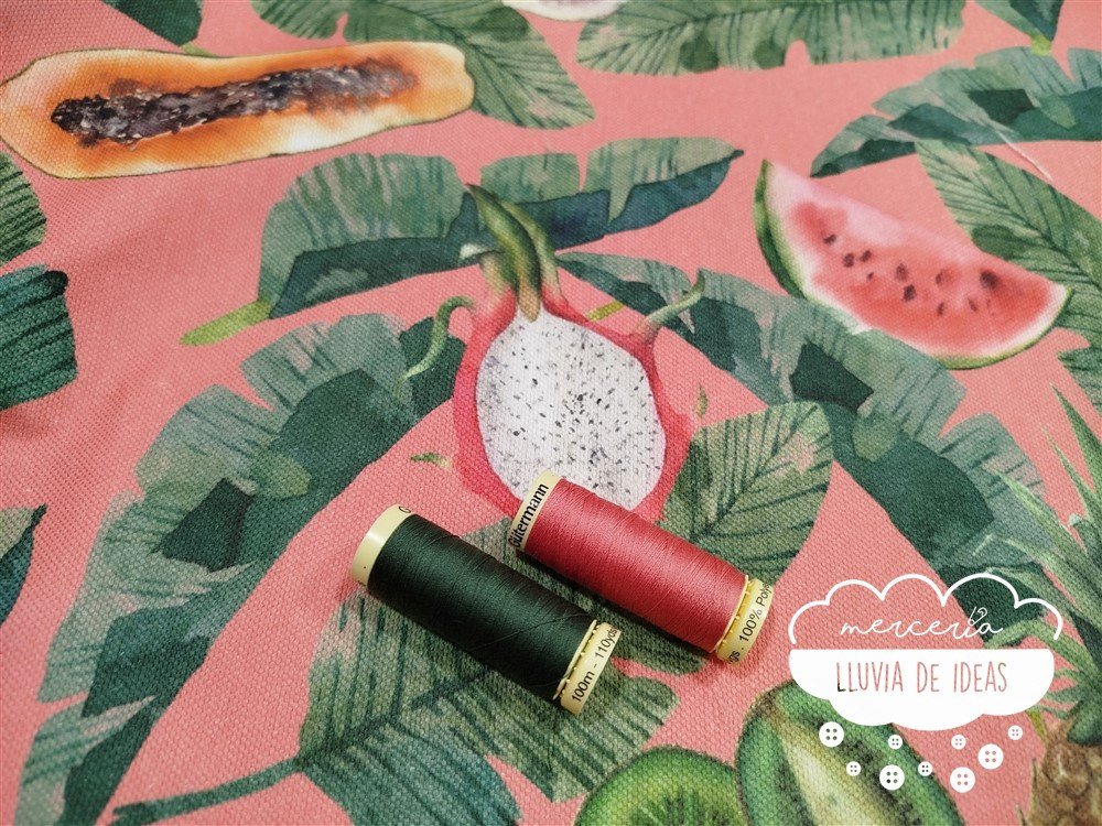 Te recomendamos coserlo con el hilo Coselotodo Gütermann. Los colores recomendados son: 984 (coral) y  561 (verde).