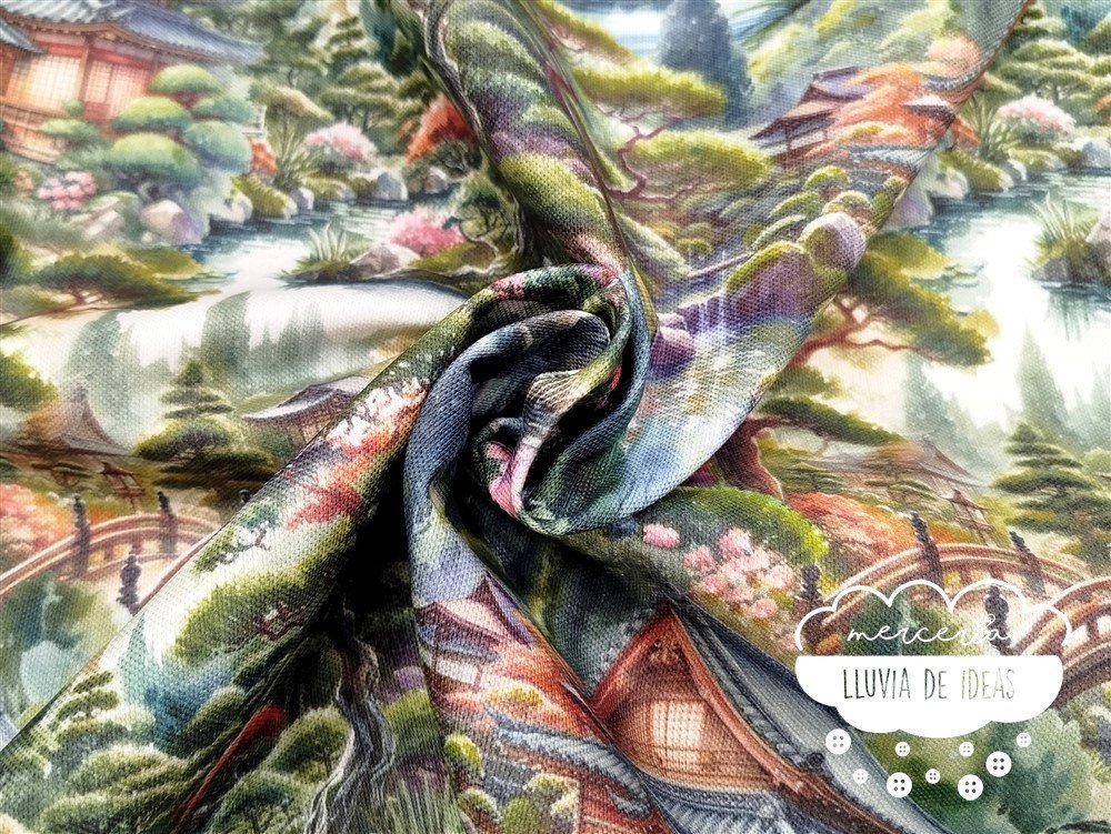 Half panamá con estampación digital que evoca templos y paisajes japoneses. Gracias a su estampado conseguirás darle un toque único a todos tus proyectos. El half panamá es un tipo de tejido indicado para tapicería o mantelería con acabado tipo esterilla. También podría emplearse en confección de prendas y accesorios de moda. El hilo es grueso en ambas direcciones y no solo en una, como ocurre con la loneta.