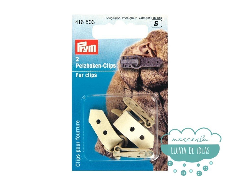 Clips o broches para peletería de hierro, color crema. Se componen de dos partes: el ojal que contiene piel y un gancho metálico que sujeta al ojal. Referencia: 416503. Presentación en blíster. El precio se refiere al pack de 2 pares (ojales y ganchos).