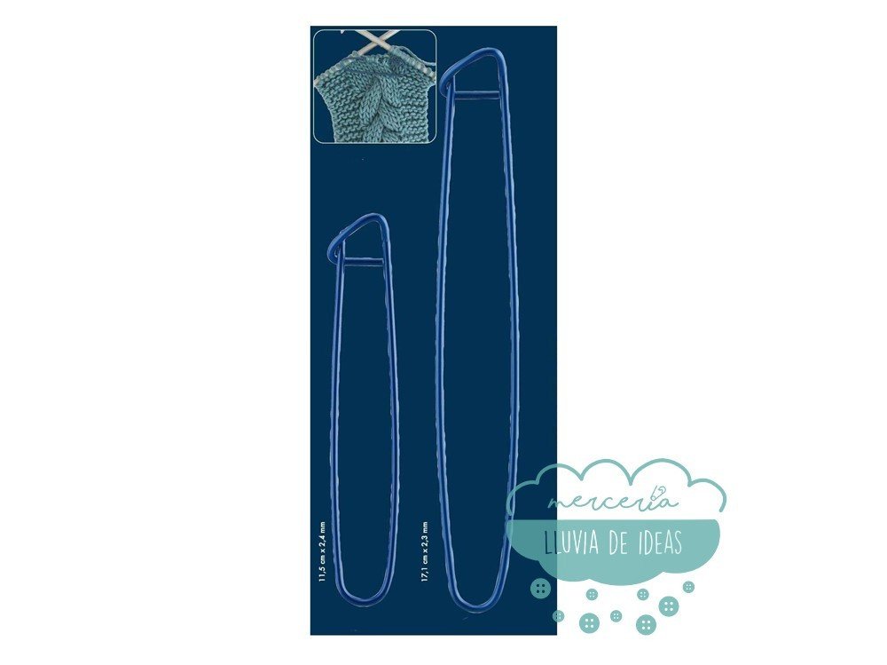 También conocidos como marcadores, se emplean para guardar los puntos de la labor ya tejidos y dejarlos en espera con el fin de unir diferentes piezas más tarde. Muy necesario en las labores de punto, sobre todo en el punto trenzado.