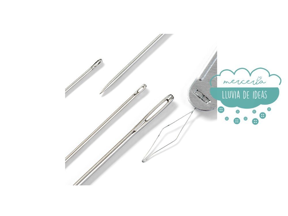 Surtido de 29 agujas para coser y zurcir más un enhebrador.