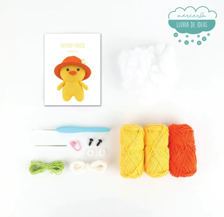 Con este Kit amigurumi Pato conseguirás darle vida al amigurumi de la Pata Daphne. El kit contiene todo lo que necesitas para hacerlo: