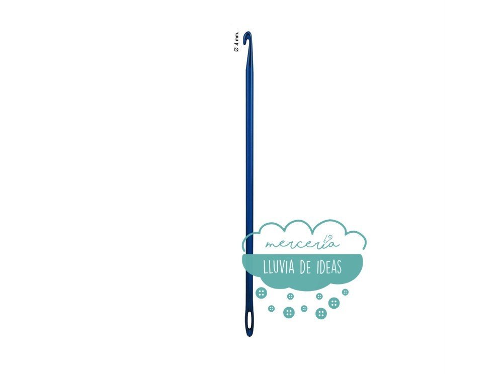 Aguja de ganchillo knooking, con ojal grande para poder enhebrar lana.