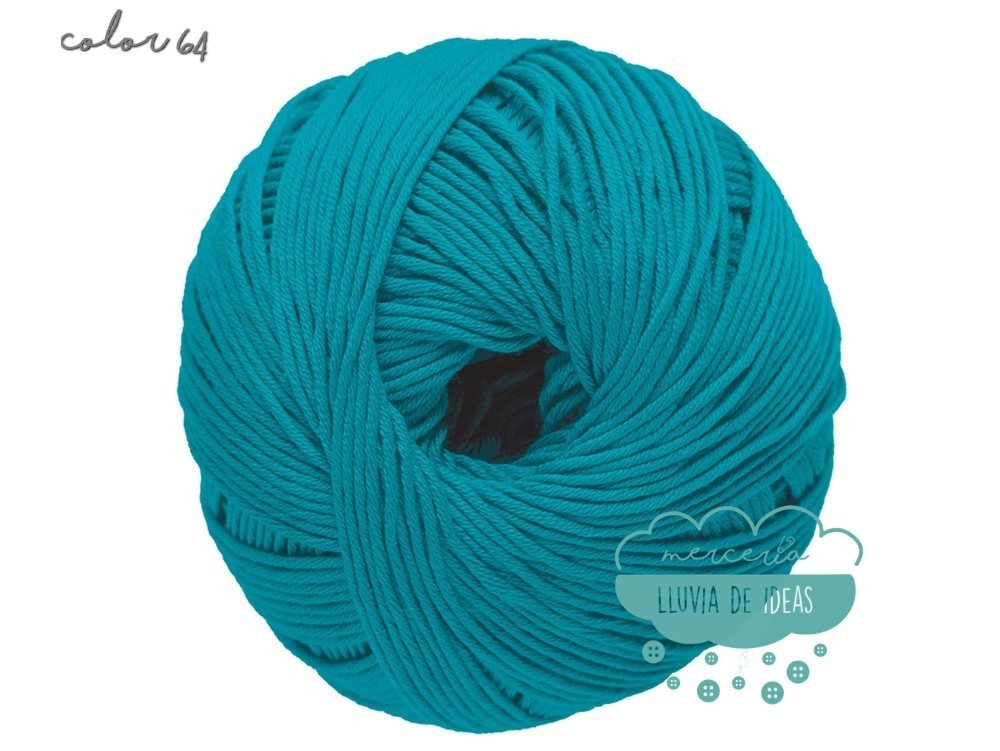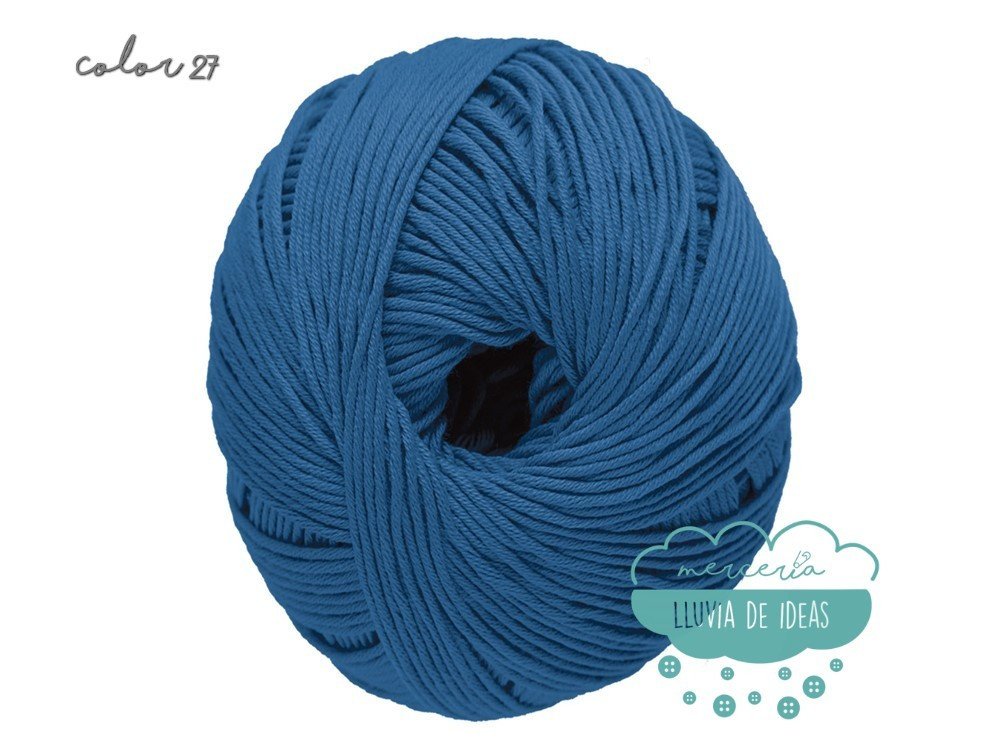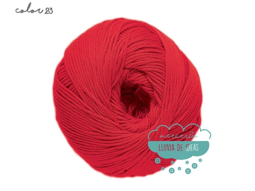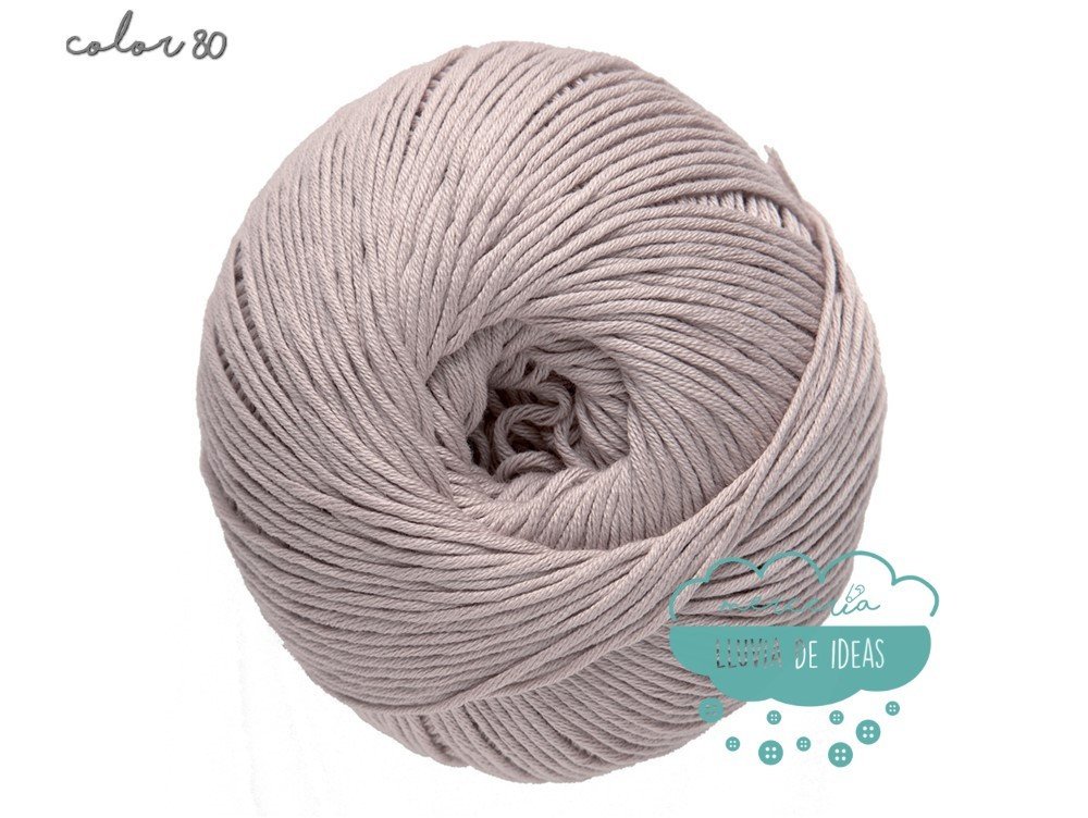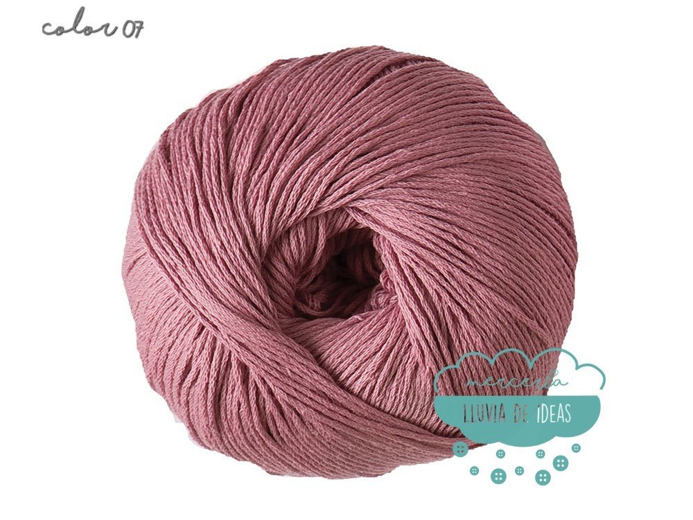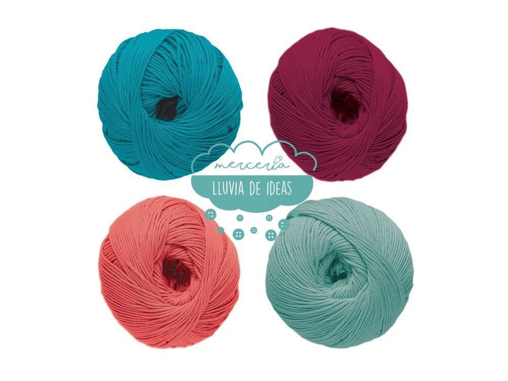 Hilo de la casa DMC, serie Natura. Se presenta en una amplia gama de colores en tonos de tendencia.
