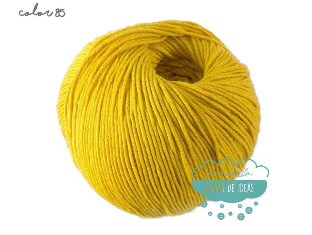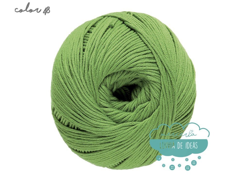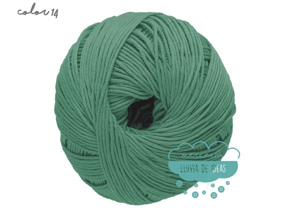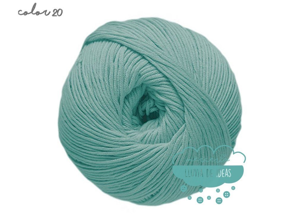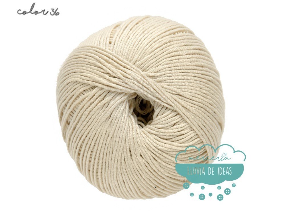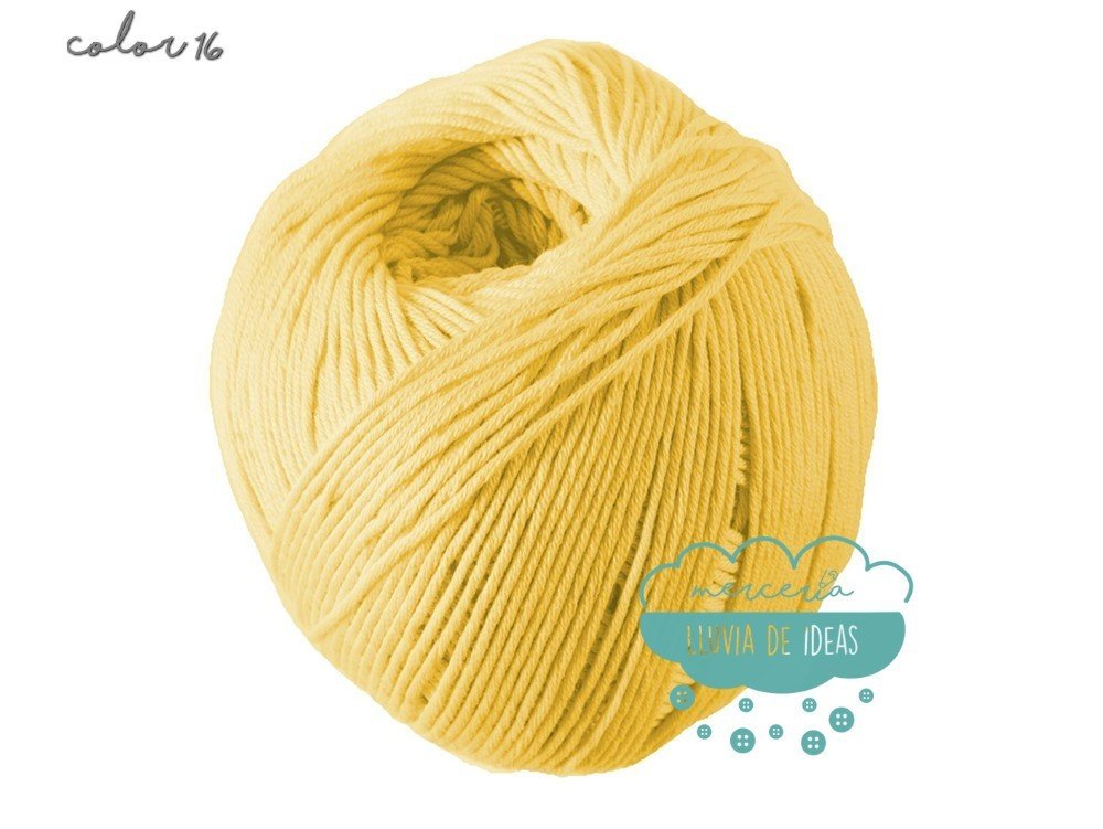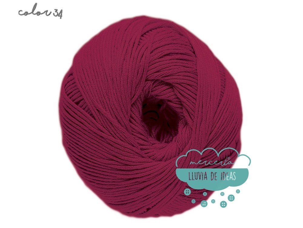 Hilo de la casa DMC, serie Natura. Se presenta en una amplia gama de colores en tonos de tendencia.