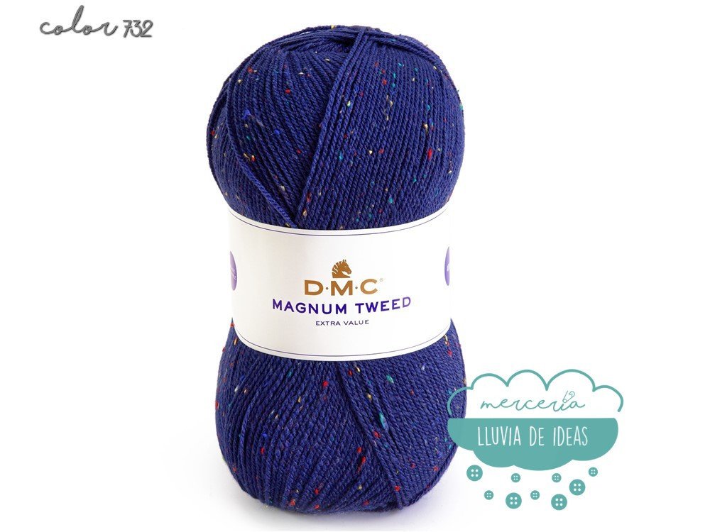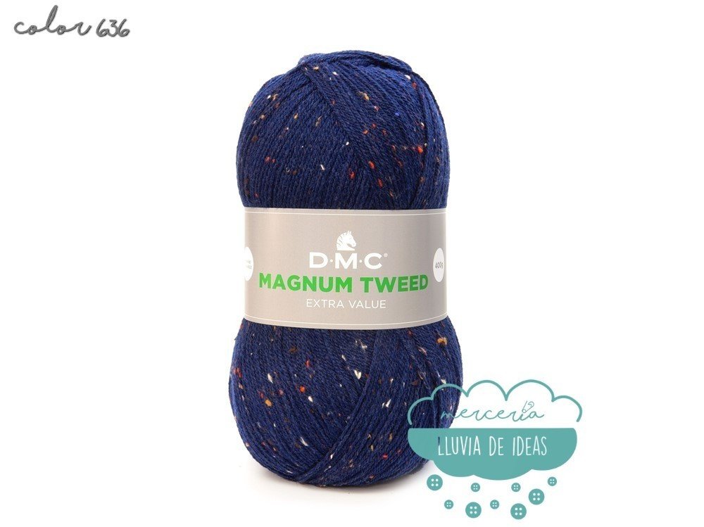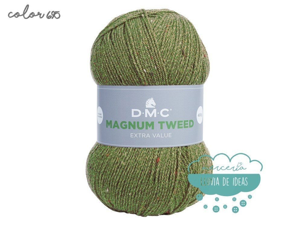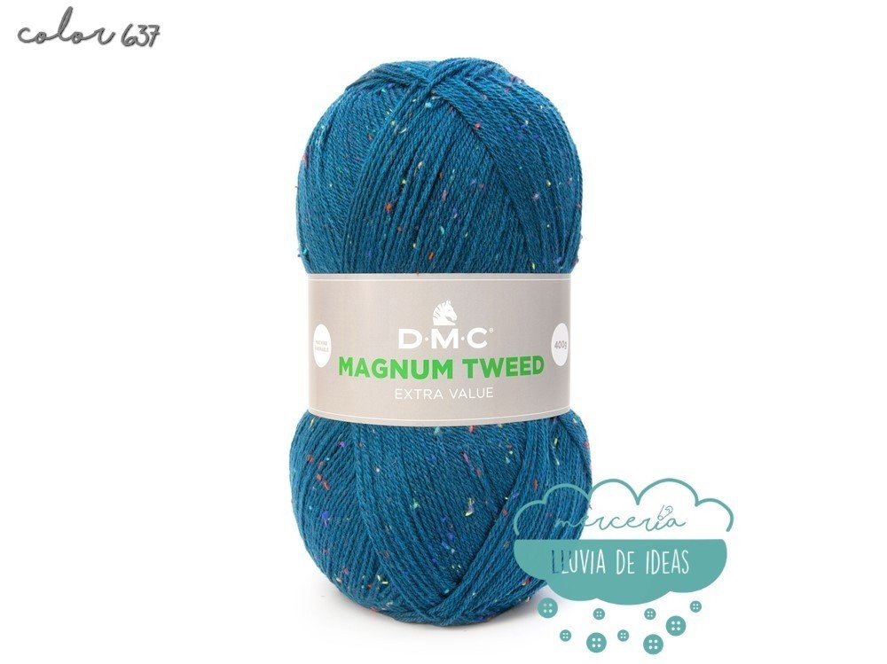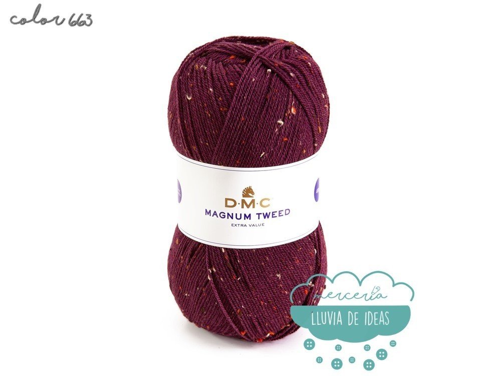 Lana de la casa DMC, serie Magnun Tweed, lana de cuatro colores con efecto "tweed", decorada con fibras coloreadas a lo largo de toda su longitud, lo que le confiere un aspecto ligeramente matizado y muy sutil.