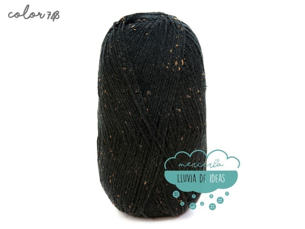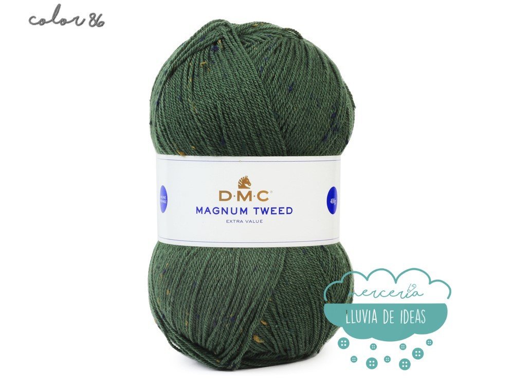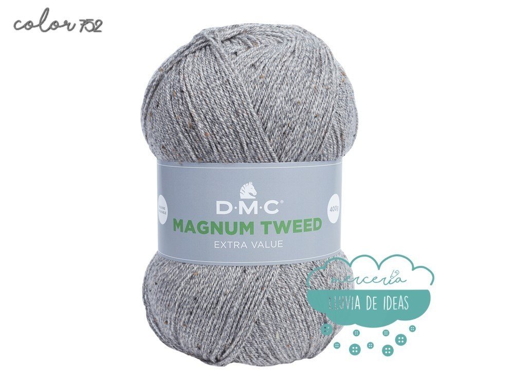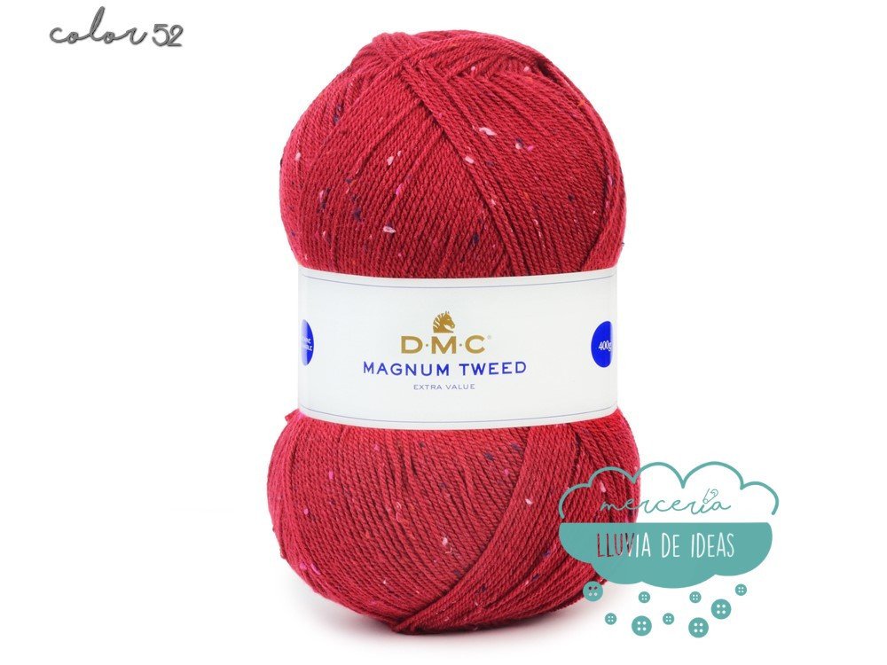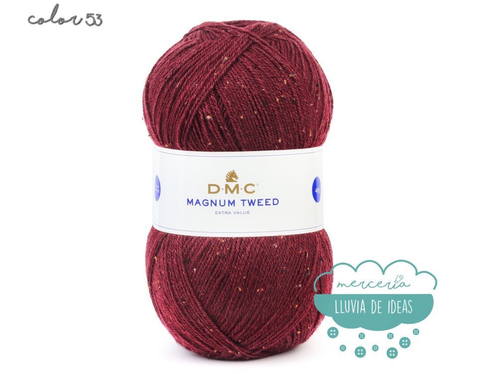 Lana de la casa DMC, serie Magnun Tweed, lana de cuatro colores con efecto "tweed", decorada con fibras coloreadas a lo largo de toda su longitud, lo que le confiere un aspecto ligeramente matizado y muy sutil.