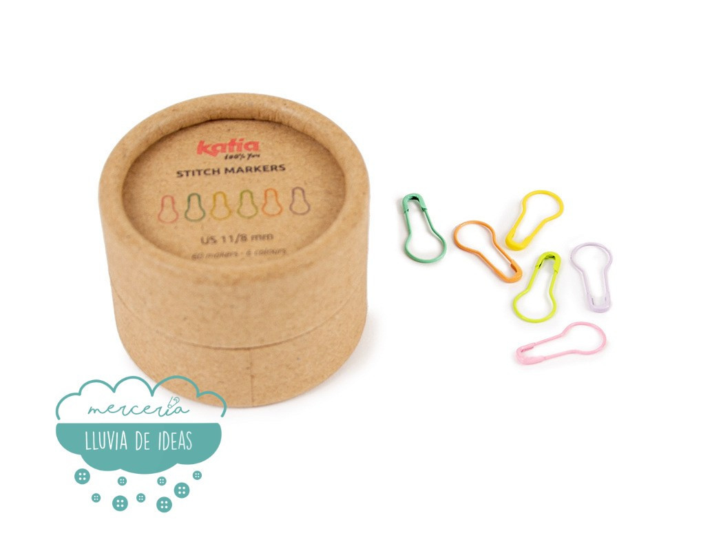 Los marcadores de punto Katia son un práctico accesorio para tejer de manera fácil y sencilla. Con ellos podrás marcar el número de puntos en tu labor, las vueltas según vas tejiendo, marcar el inicio o el final de una vuelta en tus proyectos de amigurumis, para marcar aumentos, disminuciones, etc. Se cierran sobre cualquier punto a marcar evitando la posibilidad que se desprendan al tejer.