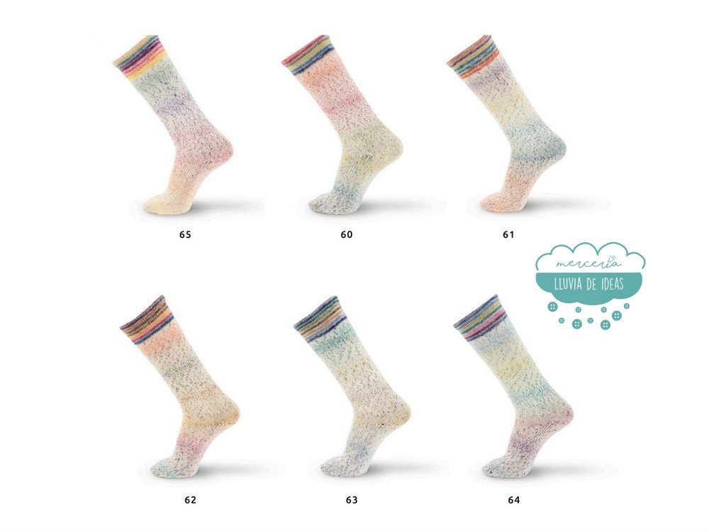 La lana Symmetric Blossom es una lana para calcetines, debido al ciclo perfecto de color, cada par es simétrico, creando dos piezas idénticas llenas de color y estilo.
