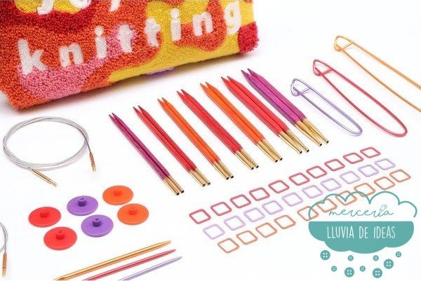 El estuche KnitPro Joy of knitting es un set de agujas intercambiables con sus correspondientes accesorios, muy cómodo y práctico. Todo ello de colores vivos.