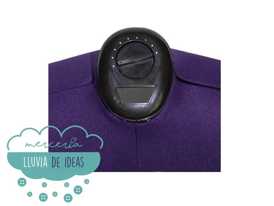 Maniquí de modista o sastrería modelo Prymadonna de la casa Prym, color azul violáceo. Maniquí giratorio de 8 piezas con acerico integrado en la zona del cuello, pie de soporte estable de plástico y marca-faldas con fijación por alfileres. Posibilidad de regulación individual en cuello, perímetro torácico, cintura y caderas mediante mando giratorio y de presión delante y ruedecilla giratoria trasera y en los lados (13 ajustes posibles). Zona de hombros elaborada para asegurar la caída correcta de la manga, montaje sencillo.