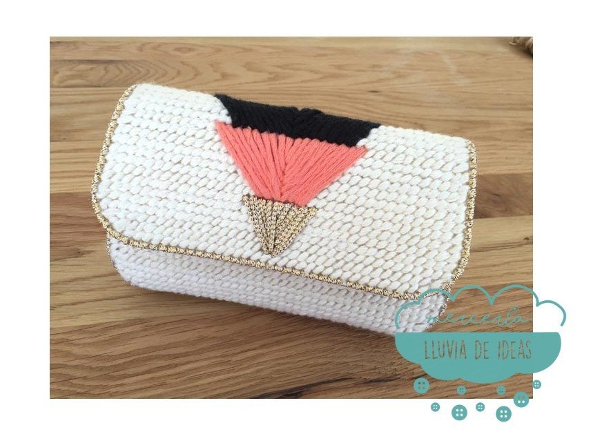 Para crear tu clutch con el Plastic Canvas deberás bordarlo a tu gusto y posteriormente montarlo (cerrarlo) para que adquiera la forma del bolso.