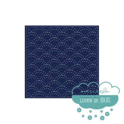 Pack tela Sashiko japonesa precortada con diseño Seigaiha. Incluye 1 corte de tela sashiko fondo azul con el dibujo impreso para bordar encima. El recuadro mide 31x31 cm. aprox. La impresión del tejido se puede eliminar con agua una vez terminado el diseño.