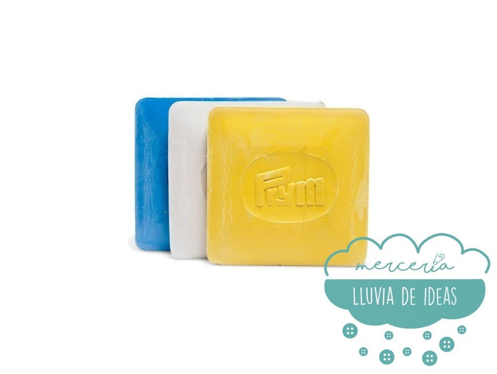 Tiza de costura o jaboncillo de sastre de forma cuadrada. El más clásico de todos los marcadores de costura. Se emplean habitualmente para marcar sobre los tejidos el patrón por donde se ha de cortar o coser sin dejar una marca permanente.