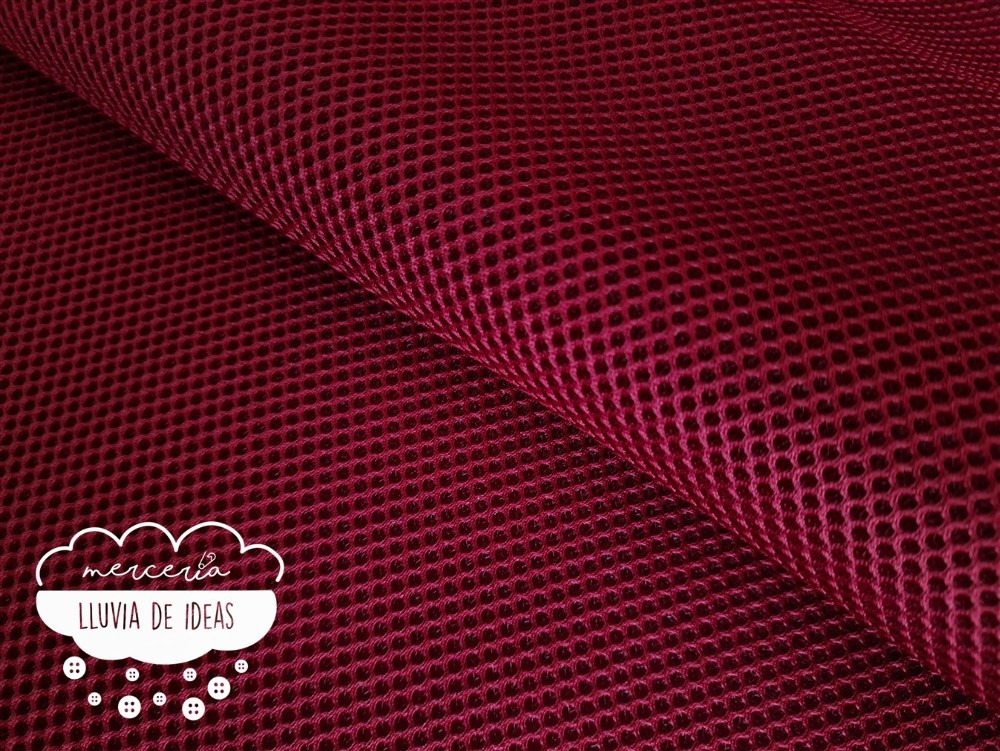 Tejido mesh 3D granate tela de malla. Nuestro tejido Mesh (3D) es innovador y versátil, ideal para moda, confección de complementos y tapizados o decoración para todas las temporadas. Contiene una forma o estructura tridimensional en forma de malla que ofrece múltiples ventajas: es un tejido de alta calidad, altamente transpirable, ligero y flexible, con mucha resistencia a la luz, a la abrasión y al roce. No absorbe el agua y se seca rápidamente.