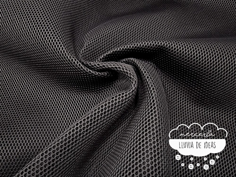 Tejido mesh 3D negro o tela de malla. Nuestro tejido Mesh (3D) es innovador y versátil, ideal para moda, confección de complementos y tapizados o decoración para todas las temporadas. Contiene una forma o estructura tridimensional en forma de malla que ofrece múltiples ventajas: es un tejido de alta calidad, altamente transpirable, ligero y flexible, con mucha resistencia a la luz, a la abrasión y al roce. No absorbe el agua y se seca rápidamente.