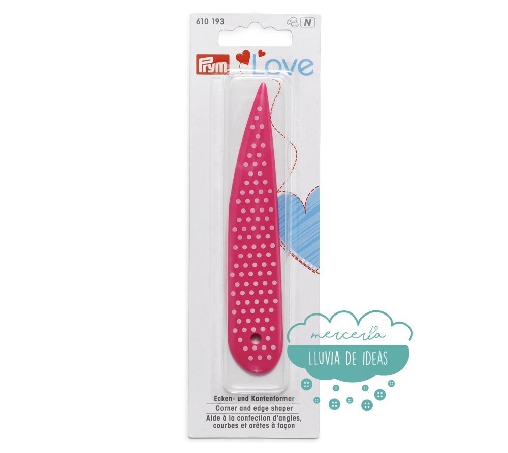Moldeador de la marca Prym Love Colección Pink. Ideal para moldear ángulos (esquinas), bordes y curvas. Protege la tela con bordes redondeados. También es adecuado para doblar papel, fieltro o cartón.