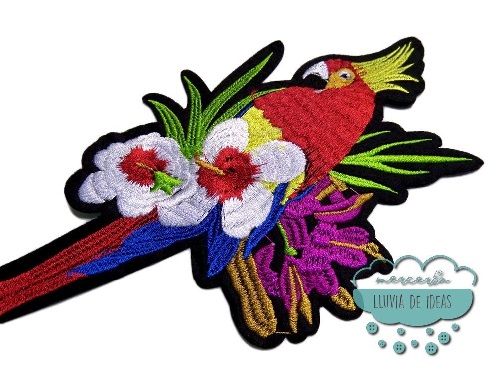 Parche bordado termoadhesivo - Guacamayo (disponible efecto espejo)