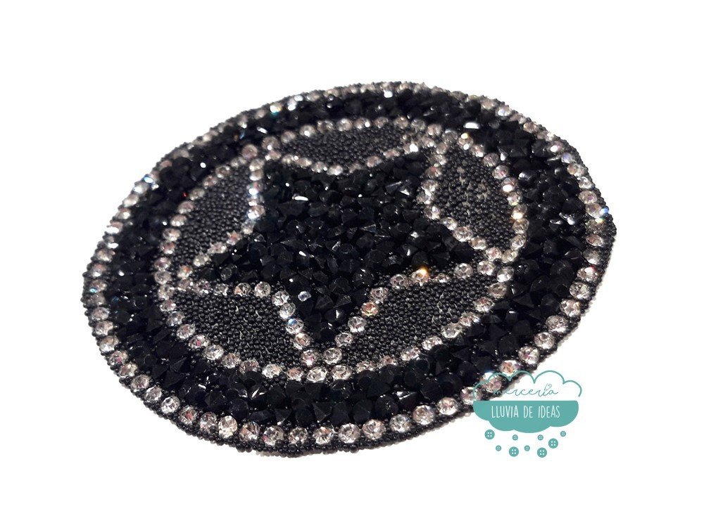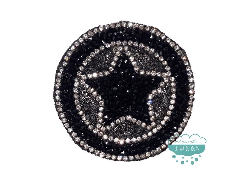 Aplicación termoadhesiva con forma de círculo y estrella central con cristales y tupis para pegar que permite la reparación y customización de prendas.