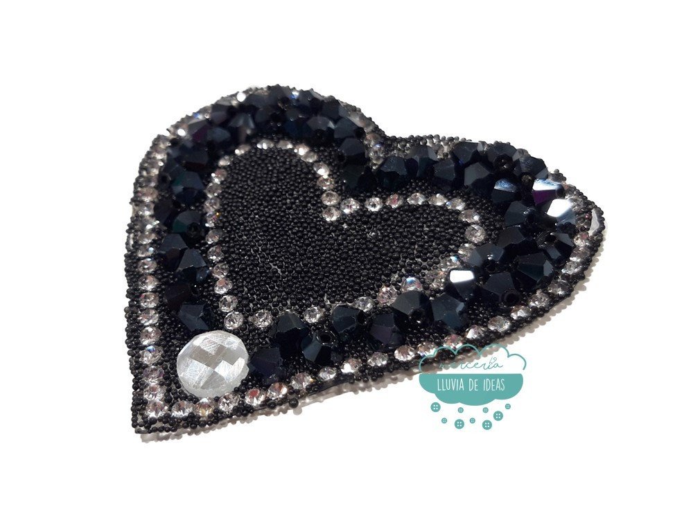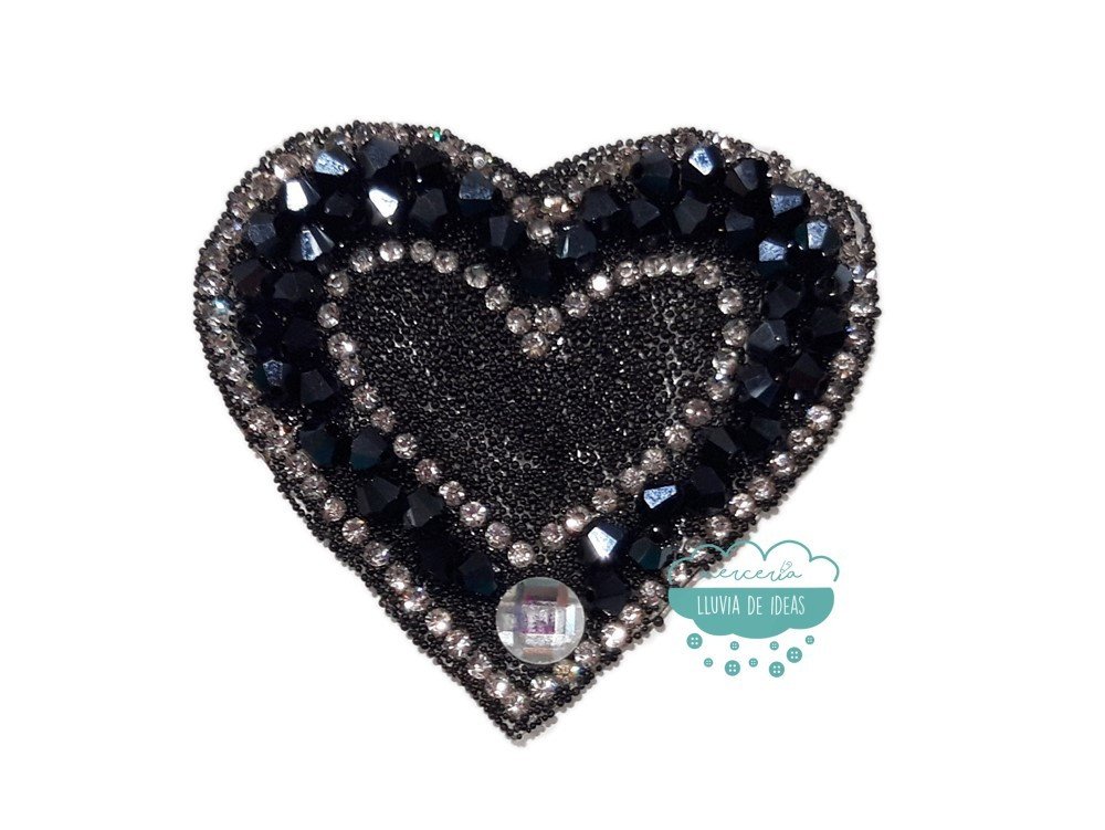 Aplicación termoadhesiva con cristal, piedra y tupis - Corazón negro