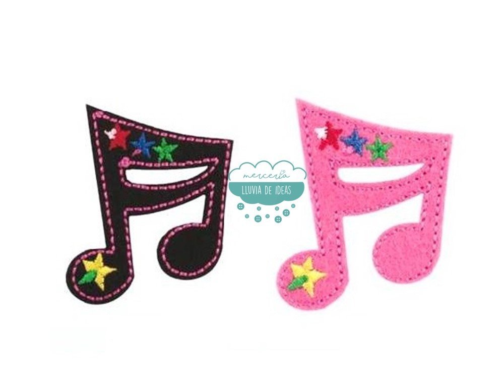 Parche bordado termoadhesivo con forma de notas musicales que permite la reparación y customización de prendas en segundos.